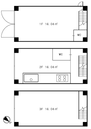 | 建物面積 | 1階16.04平米 2階16.04平米 3階16.04平米 合計48.12平米 |