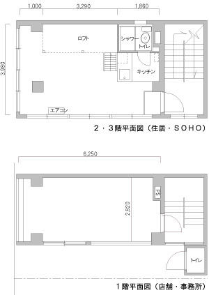 2・3階のお部屋はそんな悩みを解決してくれるSOHO仕様の物件です。 約26平米と小さいながらも、仕事場として使えるように工夫しました。